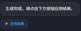 当AI 编辑器按照您的要求完成了生成后，您可以点击“**应用结果**”，从而浏览**AI生成的CG效果**。