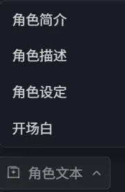 您可以在此处选择您已经创建的角色的相应角色文本，从而快速导入**角色简介、角色描述、角色设定**和**开场白**。