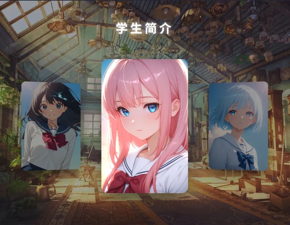 * **点击翻转：** 当卡片已经在正中央（聚焦状态）时，再次点击该卡片，它将进行 **3D 翻转** 露出背面。
