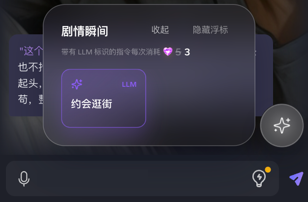 > 聊天对话框中新增「指令面板」，每一个指令可以触发和玩家的精彩互动。