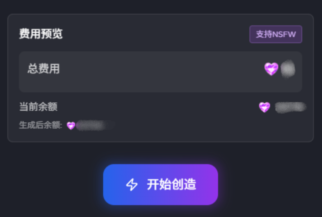 * 页面底部会**显示本次生图所需积分、您目前的积分余额、生成后剩余的积分余额**