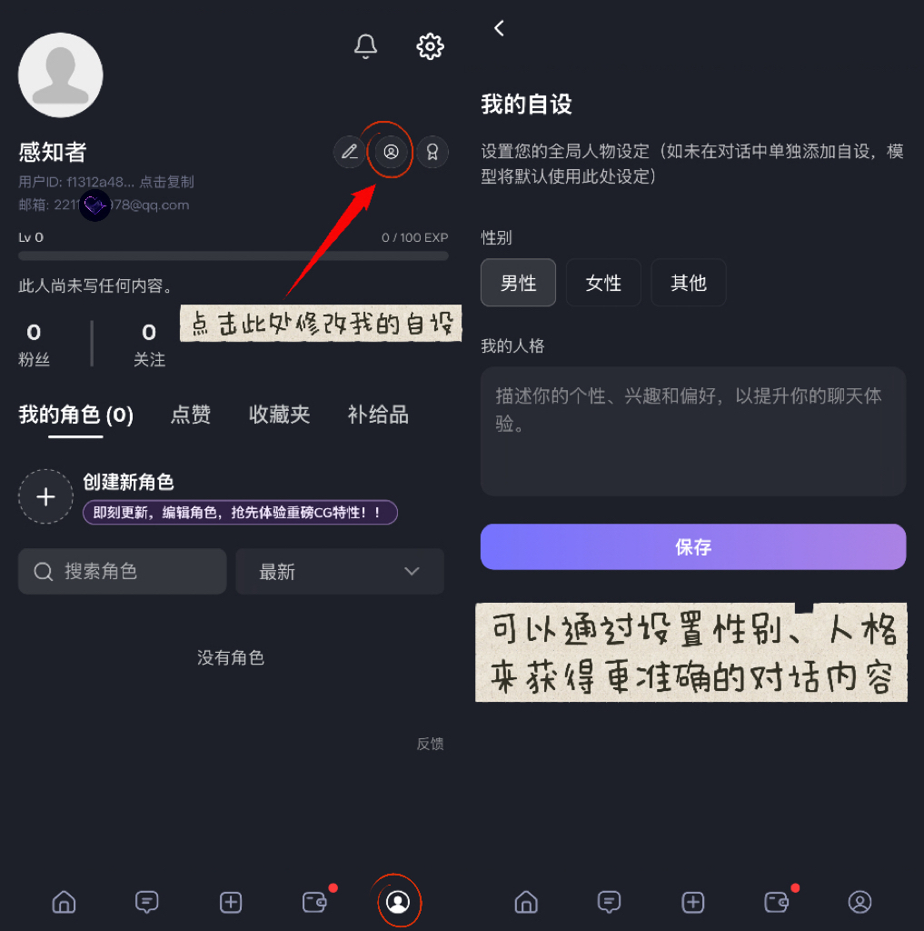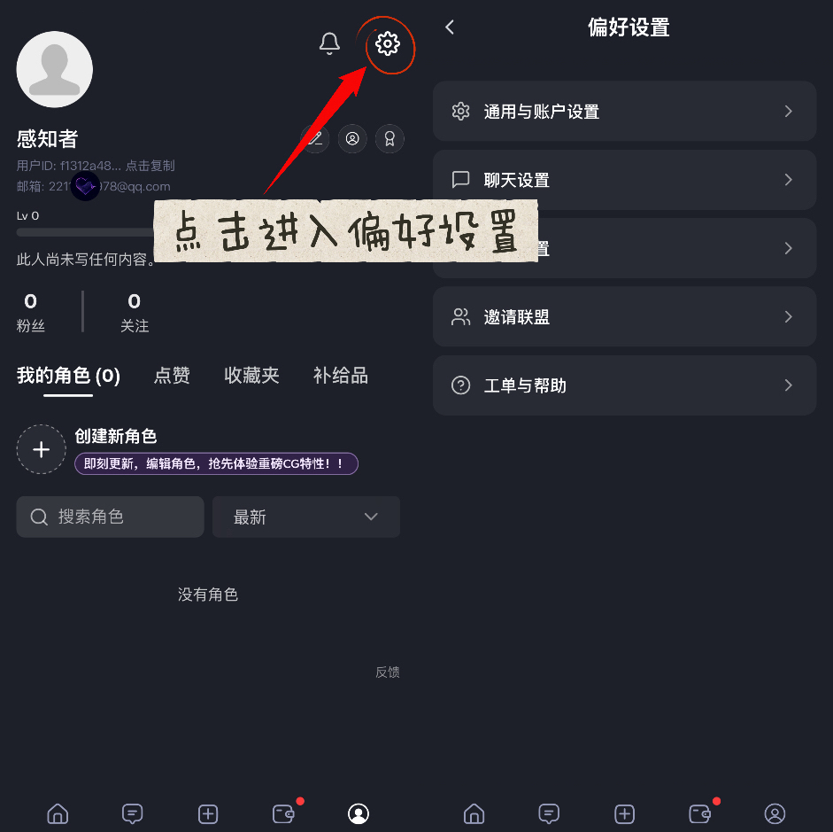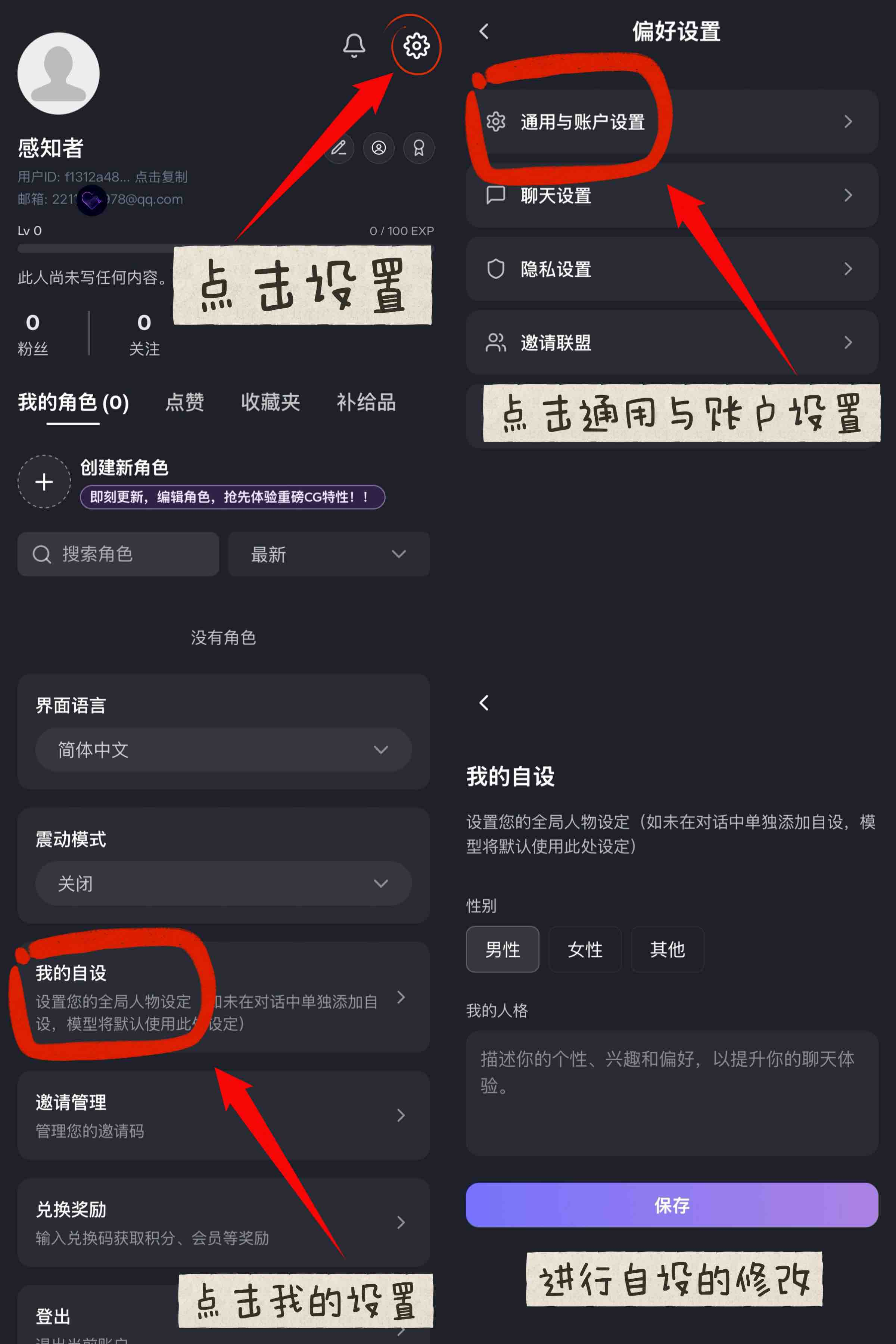 您也可以从**我的主页-设置-通用与账户设置-我的自设**中进行修改：