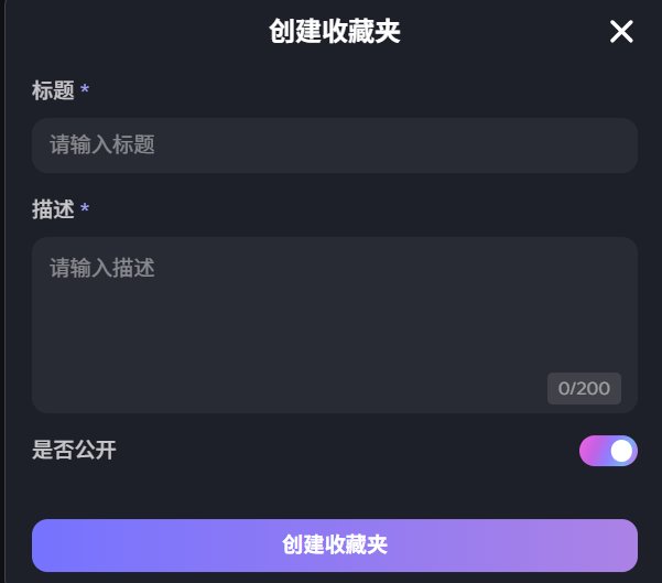 如若您希望**创建新收藏夹**，只需点击**创建收藏夹**，即可进入**创建界面**：