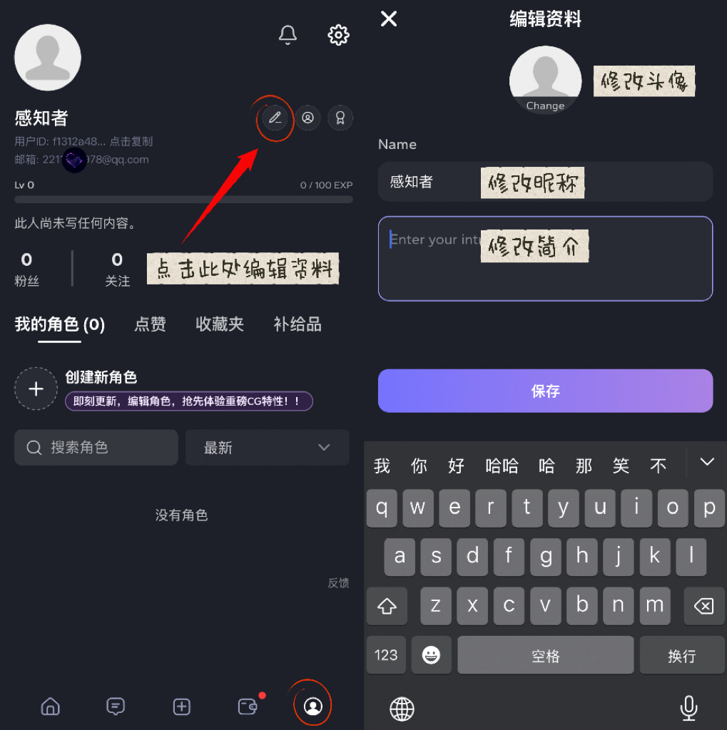 在 **【我的资料】** 页面里面，只需直接点击以下标签，即可进行修改