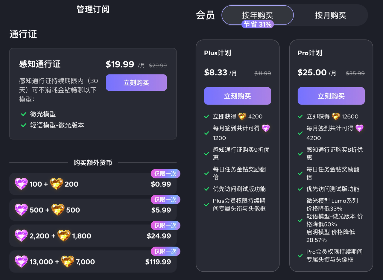 如需更好的体验，可以购买通行证/额外货币/会员来获取更多服务
