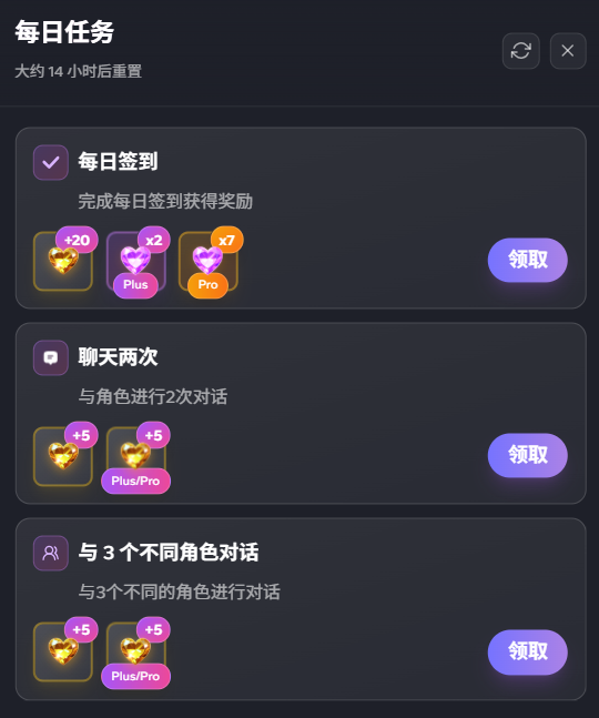 * 与任意角色进行2次对话：+ 5金钻